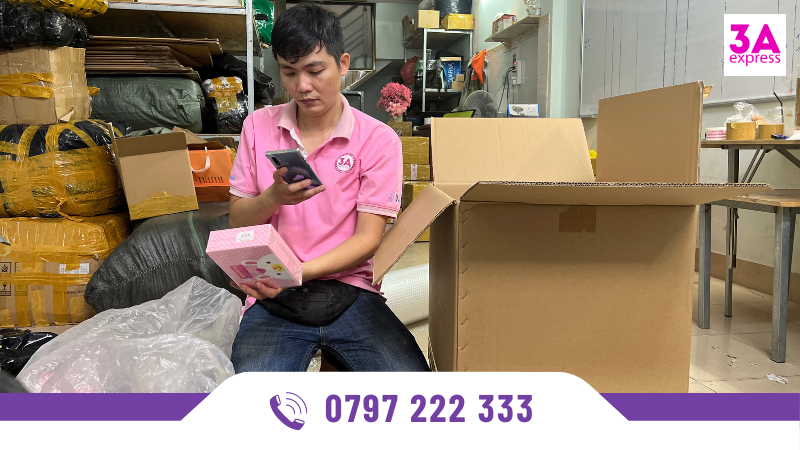 Nhân viên của 3A Logistics tiến hành đóng gói hàng hoá và làm thủ tục hải quan.